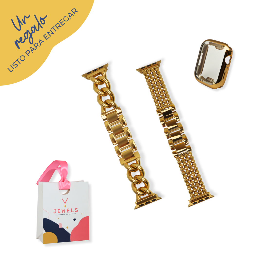Bundle 2 correas (Más vendidas) y 1 case Apple Watch - oro