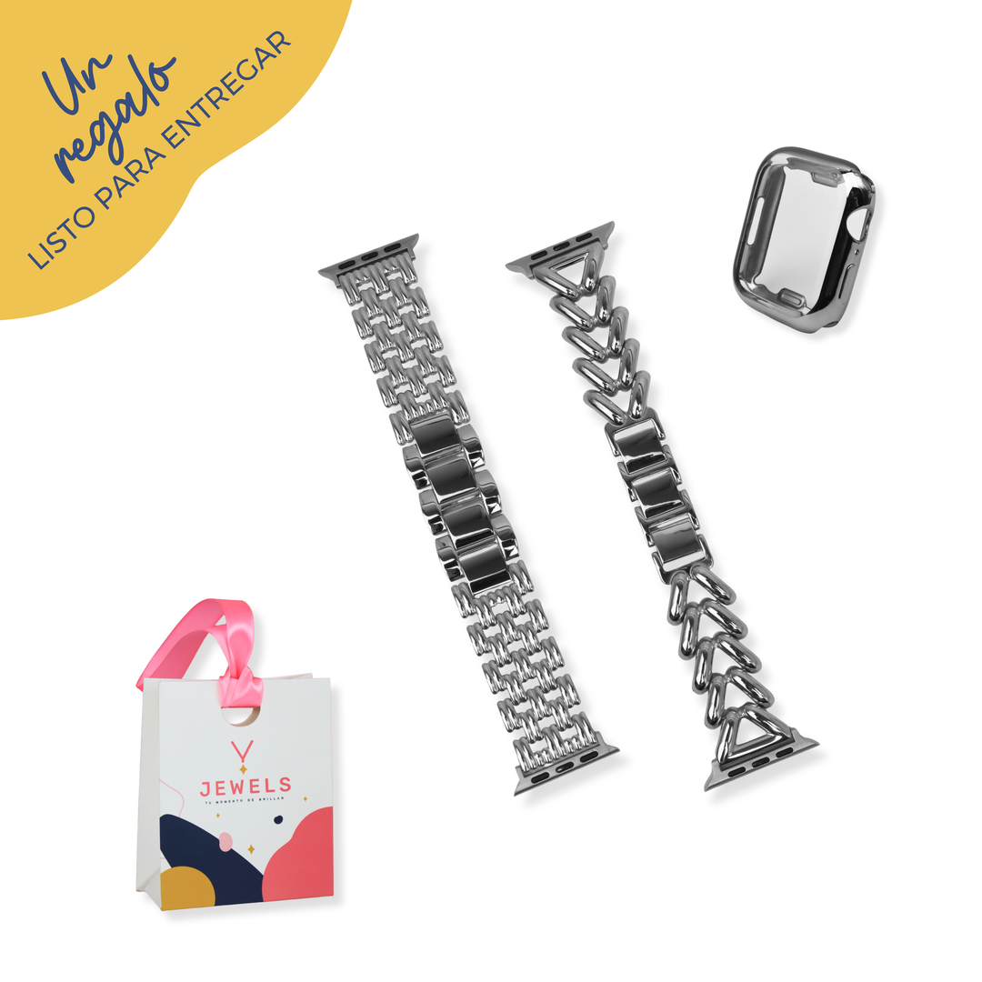 Bundle 2 correas (Más vendidas) y 1 case Apple Watch - plata