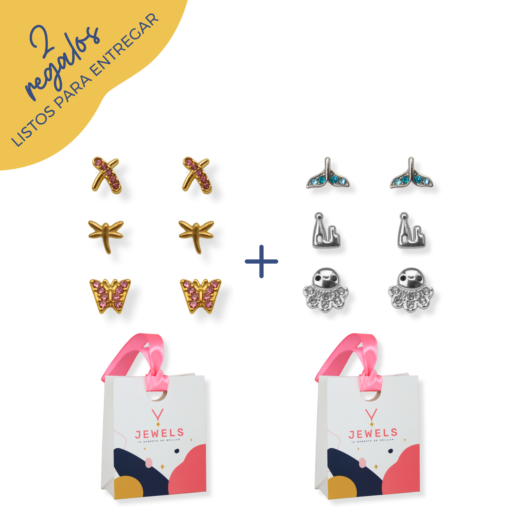 ¿Buscas el detalle ideal para consentir a dos personas especiales? Este bundle de 2 regalos es la elección perfecta para duplicar el brillo y la emoción. Los aretes han sido seleccionados para ofrecer un toque único a cada look. Lo mejor de todo: los recibirás listos para entregar en nuestras bolsitas exclusivas, diseñadas para impresionar y hacer felices a quienes las reciban. ¡Regala el doble de magia con este bundle que le encantará a tus seres queridos!