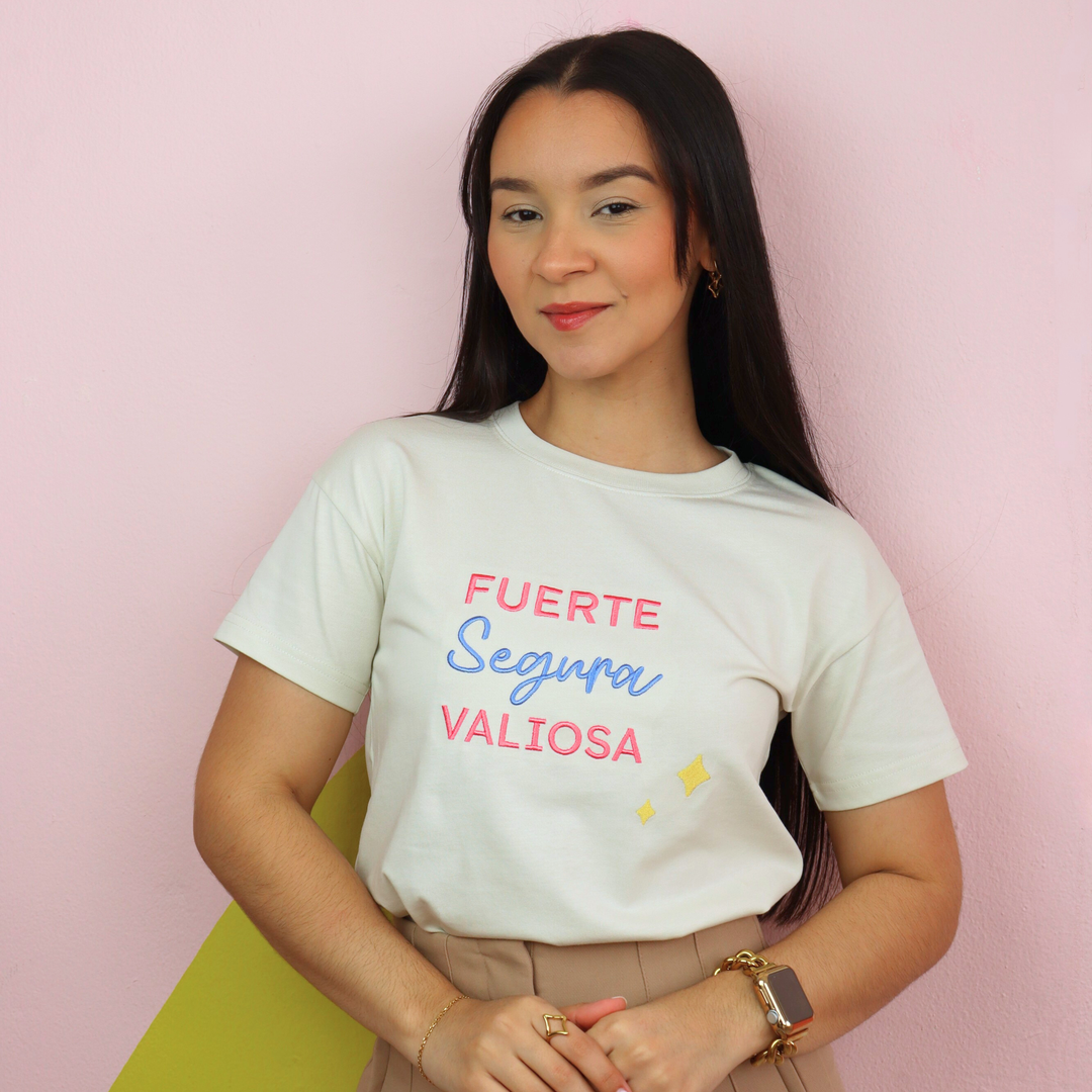 Camisa Fuerte, Segura, Valiosa - beige - bordado - S, M, L, XL - corre pequeña