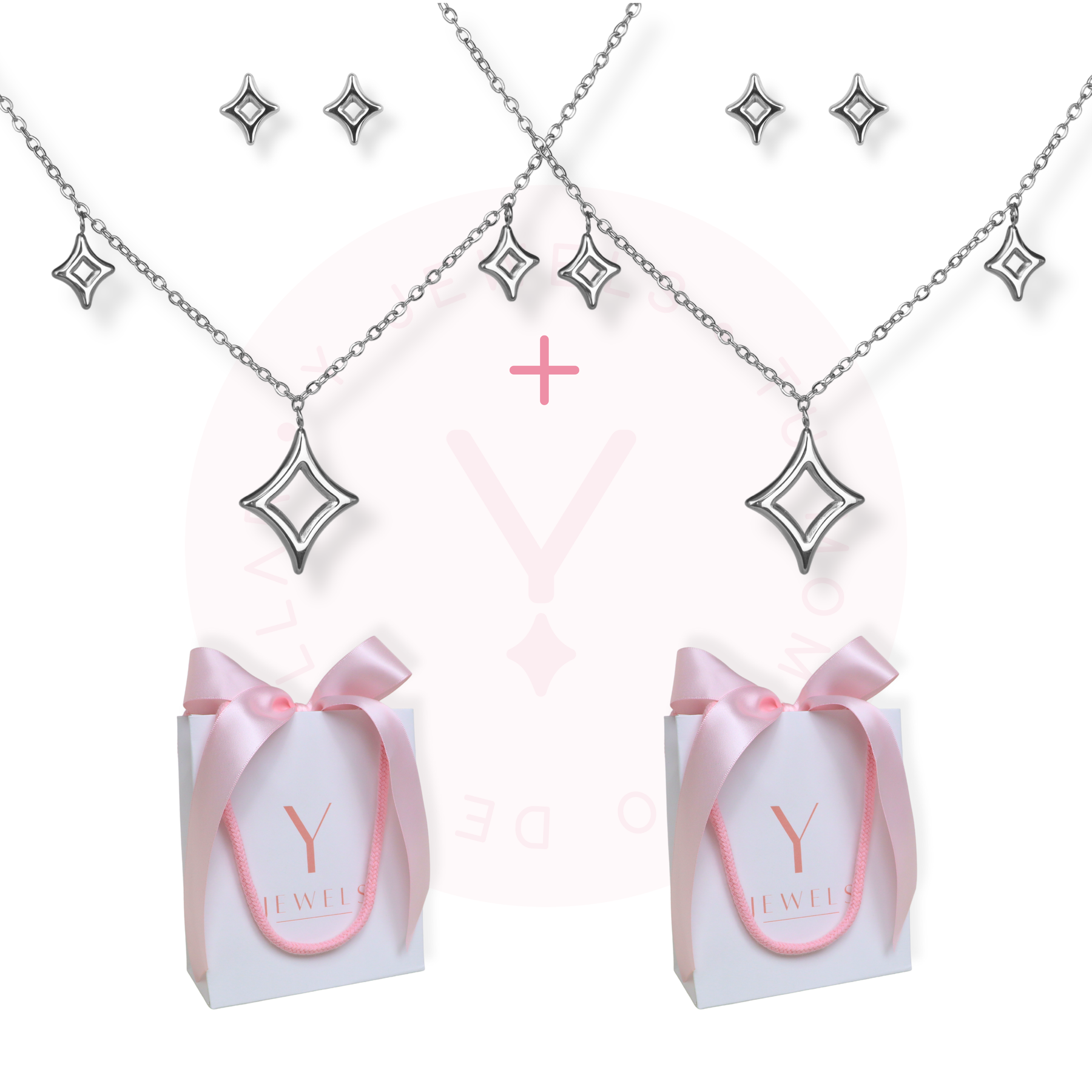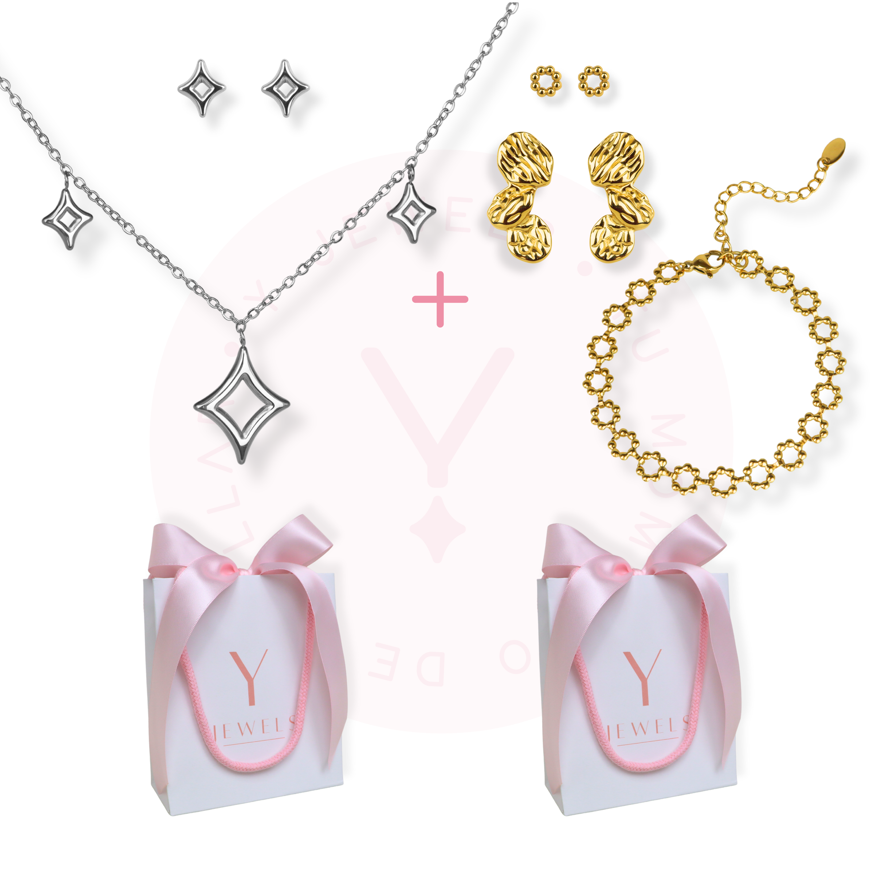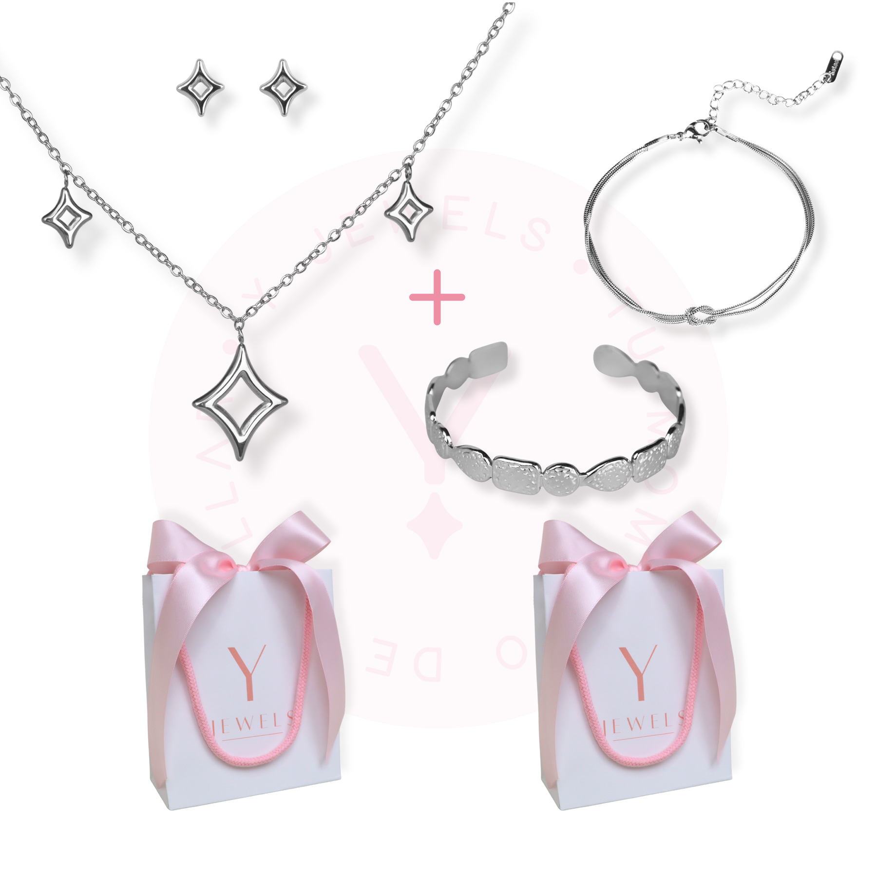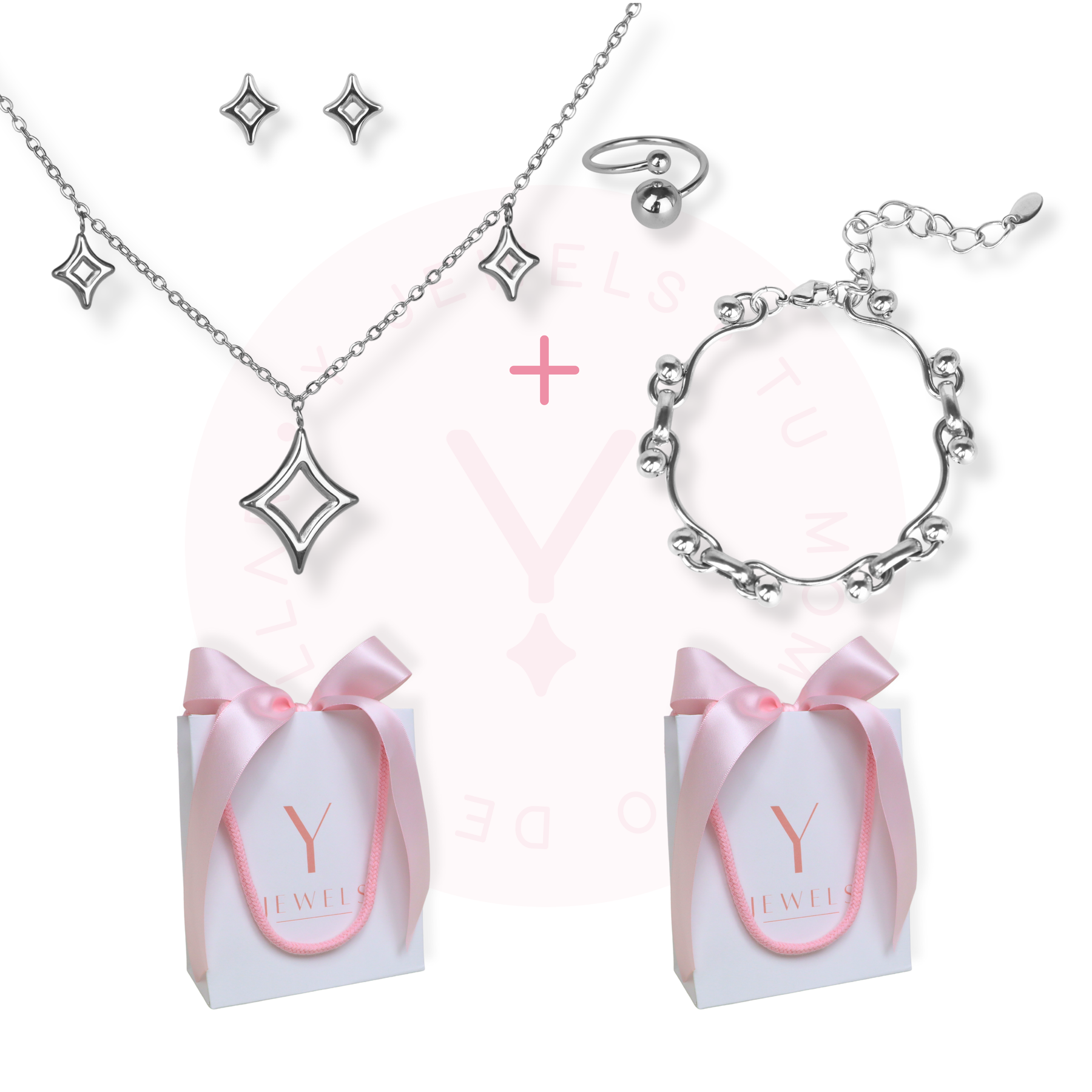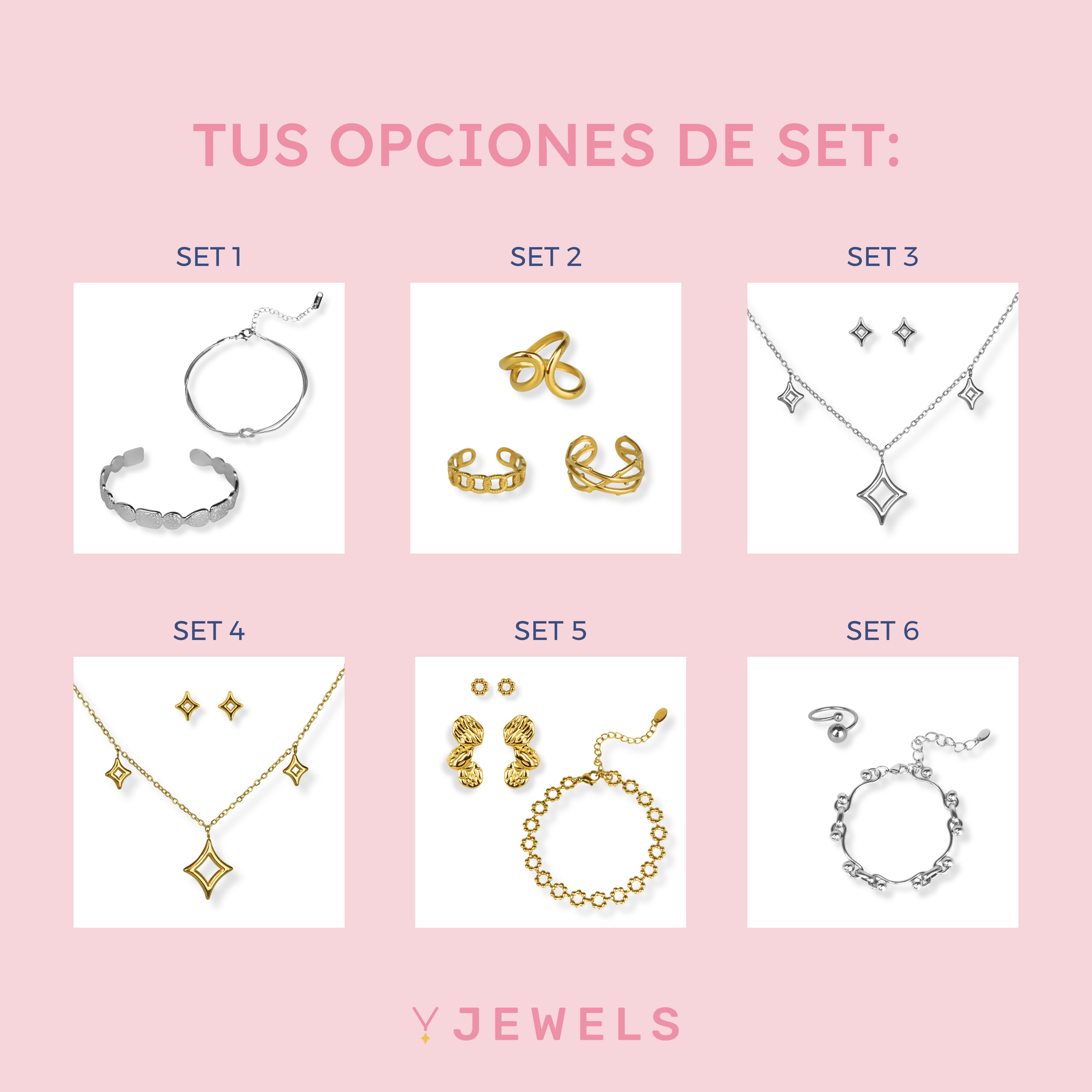 Llévate 2 sets de joyería por solo $25, con un total de 4 a 6 piezas en Stainless Steel, las perfectas para brillar y regalar.