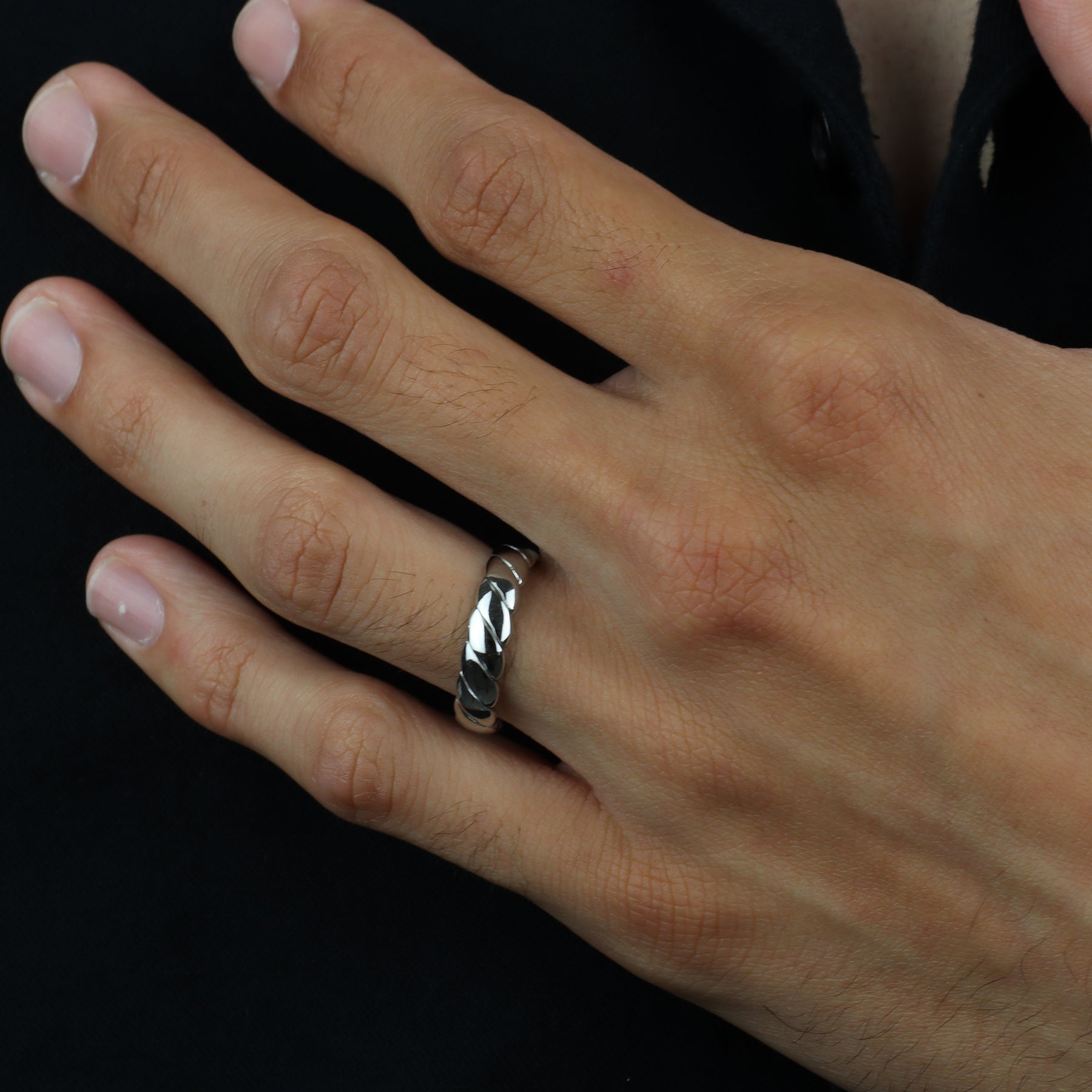 Las sortijas se han convertido en una pieza clave en los outfits para los caballeros. Le dan ese toque moderno y elegante para completar el look y que pueda brillar en cada lugar. Este diseño estilo elegante y clásico a la vez es uno que necesitas tener.